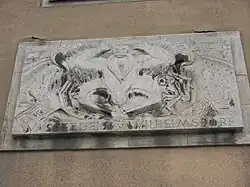 Hier befand sich einst ein Arbeiterheim. Am Neubau aus der Nachkriegszeit befindet sich ein Natursteinrelief, Der Wassergeist von Wilhelmsdorf, aus dem Jahre 1955 von Josef Schagerl. Es erinnert an die Sage vom Wilhelmsdorfer Wassermann, der in den früher hier befindlichen Ziegelteichen gehaust haben soll.