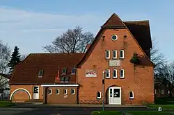 Die Schule besteht aus mehreren Gebäuden, die im 20. Jahrhundert über mehrere Jahrzehnte hinweg errichtet wurden.[2] Ältestes Gebäude ist die ehemalige Turnhalle aus dem Jahr 1912, die heute für die Ganztagsbetreuung genutzt wird. Unter Denkmalschutz steht ein zweigeschossiger Ziegelbau mit Walmdach aus den Jahren 1950–1952. Errichtet wurde der Bau nach Plänen des Architekten Werner Lorenzen aus Heide, der nahtlos im Stil der 1930er und 1940er weiterbaute.[5]