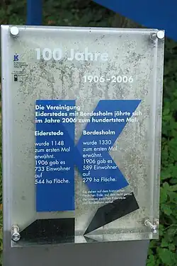 Dieser Erlass wird der Öffentlichkeit durch das Amtsblatt der Königlichen Regierung zu Schleswig am 2. März 1906 mitgeteilt. Es folgte die Wahl einer gemeinsamen Gemeindevertretung, die am 24. April zu ihrer ersten Sitzung zusammenkommt. Nach dem 31. März 1906 hörte Eiderstede auf als Gemeinde zu existieren. Zu diesem Zeitpunkt hatte Eiderstede 744 Einwohner auf 544 ha gegenüber Bordesholm mit 589 Einwohnern auf 279 ha.
