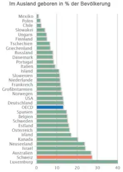 1980 waren 14,1 % der in der Schweiz lebenden Menschen Ausländer, 1990 waren es 16,4 %, im Jahr 2000 19,3 %, 2010 21,9 % und 2013 23,2 %.[3] Das durchschnittliche jährliche Wachstum von 1980 bis 2013 betrug knapp 1,7 Prozent.