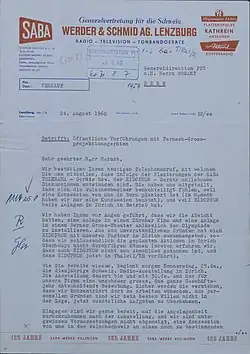 - ↑ Zwanzig Jahre Fernsehgrossprojektion. Neue Zürcher Zeitung, 10. Mai 1959, S. a39