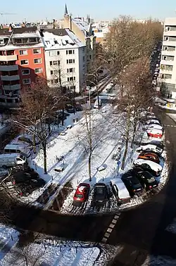 Der Verkehr wird ringförmig als Einbahnstraße (Mainzer Straße) um das Oval herumgeführt. Die Innenfläche besteht aus festgetretenem Boden und 12 Linden und wird mittig von zwei Fußwegen in Ost-West- sowie in Nord-Süd-Richtung gekreuzt. Die Anlage fungiert als Endpunkt der Allee der Teutoburger Straße und leitet zum anschließenden Römerpark über.