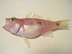 - ↑ W. L. Smith, E. Everman, C. Richardson: Phylogeny and Taxonomy of Flatheads, Scorpionfishes, Sea Robins, and Stonefishes (Percomorpha: Scorpaeniformes) and the Evolution of the Lachrymal Saber. In: Copeia. Band 106, Nr. 1, 2018, S. 94–119. doi:10.1643/CG-17-669