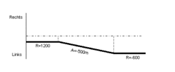 Eine Eiklothoide (auch Eilinie) ist eine Entwurfselementenfolge bei der Trassierung von Straßen und Bahnstrecken. Sie schafft einen Übergang zwischen zwei gleichgerichteten Kreisbögen mit unterschiedlichen Radien und entsteht, wenn bei einer Klothoide an zwei verschiedenen Punkten die Schmiegekreise gezeichnet werden.[1] Dies ist nur möglich, wenn der kleinere Kreis in dem größeren Kreis liegt und beide nicht konzentrisch sind, sowie einander nicht berühren.