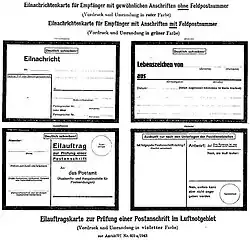 Bedingung war, dass die Stadt im Wehrmachtbericht erwähnt worden war, ansonsten galt eine Frist von vier Tagen. Sollte die Postanlage selbst getroffen worden sein, wurden bereits vorbereitete Lastkraftwagen zum Transport in die nächstgelegene Postanstalt eingesetzt.