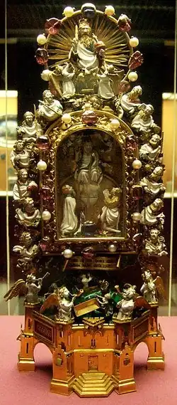 | 53 | Lothar-Kristall (BM 1855,1201.5) | Belgien | 855–869 | Die für Lothar II., König von Lotharingien, angefertigte Gemme zeigt Bilder der biblischen Geschichte von Susanna und den beiden Ältesten. Damit ist möglicherweise Lothars II. eigene Situation reflektiert: Er hatte sich unter Falschvorwürfen gegen seine Frau scheiden lassen, weil er fürchtete, ohne Erben zu bleiben; der Papst erkannte die Scheidung jedoch nicht an. Nach Lothars Tod wurde das mittlere der karolingischen Königreiche zwischen dem Westreich und dem Ostreich aufgeteilt.[75] | |