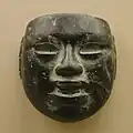 29 | Steinerne Maske der Olmeken (BM Am1938,1021.14) | Petén, Guatemala | 900–400 v. Chr. | Die offene Mundpartie und das kindliche Gesicht sind typisch für die Masken-Kunst der Olmeken. Auf beiden Seiten des Mundes befinden sich Bildzeichen; solche olmekischen Glyphen sind die ältesten bekannten Schriftzeichen in Amerika.[46] |