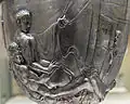 43 | Teller mit dem Bildnis von Schapur II. (BM 1908,1118.1) | Türkei / Iran | 300–400 | Die Gravur des Silbertellers zeigt den persischen Großkönig Schapur II. bei der Jagd. Unter seiner Herrschaft wurde im Sassanidenreich der Zoroastrismus als Religion staatlich gefördert – zur selben historischen Zeit, in der sich im Römischen Reich das Christentum zur Reichskirche entwickelte.[63] |