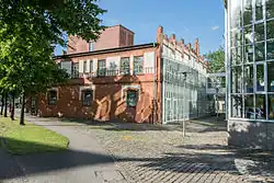 Die weiter sichtbaren Fassadenteile des ursprünglichen Gebäudes von 1910 blieben unverändert, nur der Turm wurde dem Stil des neuen Gebäudeteiles angepasst.