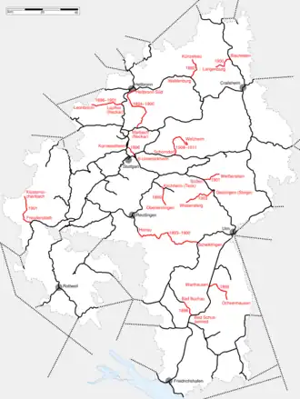 - Warthausen–Ochsenhausen (Nov 1899): Äpfingen (IIa), Maselheim (IIa), Reinstetten (IIa), Ochsenhausen (IIIa)