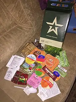 - Korea: Korean military MRE (한국군 전투식량)[4], Typ I (Ultrahocherhitzt), Typ II (Gefriergetrocknet), Typ III (Ultrahocherhitzt, mit selbsterhitzendem Wärmebeutel)