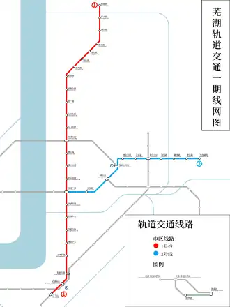 ![]() Das aktuelle Streckennetz der Monorail Wuhu | |||||||||||||||||||||||||||||||||||||||||||||||||||||||||||||||||||||||||||||||||||||||||||||||||||||||||||||||||||||||||||||||||||||||||||||||||||||||||||||||||||||||||||||||||||||||||||||||||||||||||||||||||||||||||||||||||||||||||||||||||||||