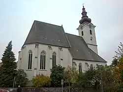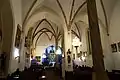 1465, im 18. Jh. teilweise umgebaut, quadratische Einstützenhalle mit ebenso langem einschiffigem Chor |