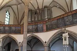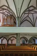 St. Barbara | ![]() eines nach Westen, eines nach Osten und 2 × 2 seitliche, nachträglich mit zweigeschossigen barocken Emporen ausgestattet |
