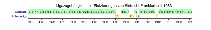 Mit ihrer Fußballabteilung war die Eintracht 1963 Gründungsmitglied der Bundesliga. Sie gilt als einer der großen Traditionsvereine im deutschen Fußball und belegt nach bisher 56 Spielzeiten in der Bundesliga Platz 7 der Ewigen Tabelle. Zwischen 1996 und 2012 spielte sie bei vier Abstiegen und vier Aufstiegen insgesamt sechs Saisons in der 2. Bundesliga. Zu den größten Erfolgen des Vereins gehören die Deutsche Meisterschaft 1959, fünf DFB-Pokalsiege (1974, 1975, 1981, 1988 und 2018) sowie der Gewinn des UEFA-Pokals 1980 und der UEFA Europa League 2022. Zudem erreichte die Eintracht als erster deutscher Verein das Finale des Europapokals der Landesmeister 1960.