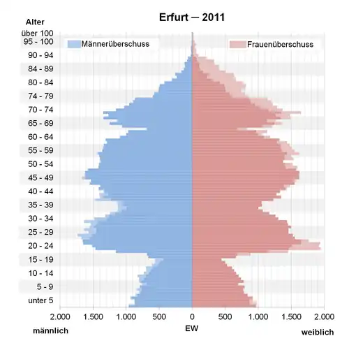 - ↑ Datenbank Zensus 2011, Erfurt, Alter + Geschlecht