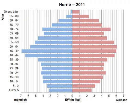 - ↑ Datenbank Zensus 2011, Herne, Alter + Geschlecht