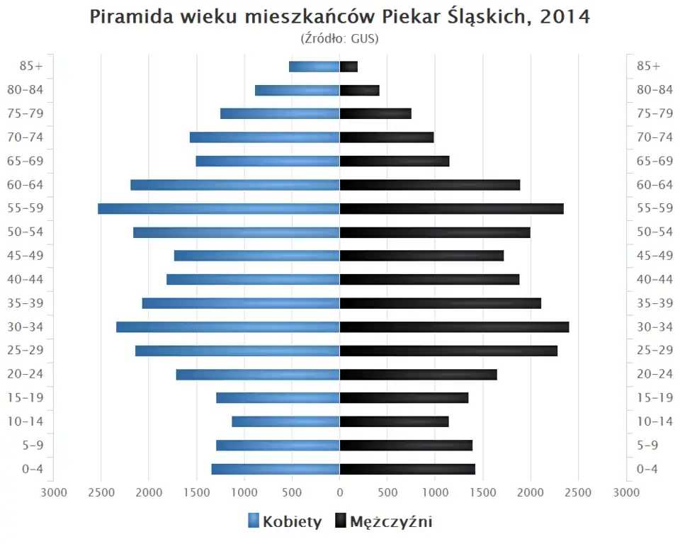 Am 30. Juni 2016 betrug die amtliche Einwohnerzahl für Piekary Śląskie 56 126. Die höchste Einwohnerzahl hatte Piekary Śląskie nach Angaben der GUS im Jahr 1987 mit 69 340 Einwohnern.