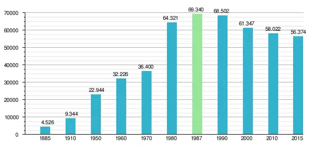 - 1987 – 69 340 (Höchste Einwohnerzahl)