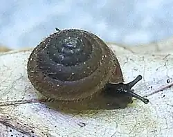 - ↑ Weichtiere Sachsens: Einzähnige Haarschnecke. (Petasina unidentata. Draparnaud, 1805)