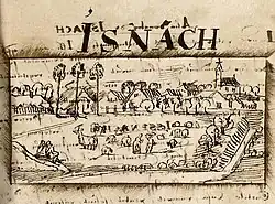 „Porcionem nostram de villa Hisnanca, Hisnanca in pago Bedinse“ (Unseren Teil der Villa Hisnanca, Hisnanca im Gau Bitburg) (Wampach[7] I 2 Nr. 47). Mit diesen Worten schenkten Godoin und sein Sohn Helmerich ihre Güter zu Eisenach an die Abtei Echternach, wie es die älteste Originalurkunde aus Echternach aus dem Jahr 762 bezeugt.