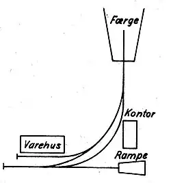 Die Eisenbahnfährstrecke zwischen Ærøskøbing und Svendborg sowie die Bahnanlagen am Hafen wurden am 17. Juli 1931 eingeweiht, nachdem bereits am 9. Oktober 1875 das erste Schiff auf dieser Route fuhr. Noch 1989 wurden 1030 Güterwagen mit 10.200 Tonnen Fracht übergesetzt.[1] Der Verschub der Wagen auf der Insel erfolgte mit einem Traktor, der an beiden Enden mit einer Eisenplatte mit Pufferbreite ausgestattet war. Am hinteren Ende hatte er zudem einen Kupplungshaken.[1]