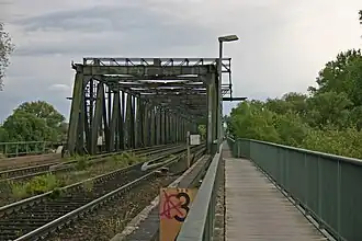 - ↑ Gütermotorschiff touchiert im Nebel Schwabelweiser Eisenbahnbrücke auf wochenblatt.de