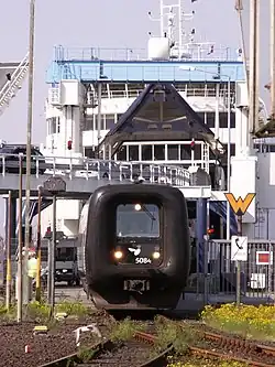 Gedser, Eisenbahnfähre Warnemünde–Gedser (1886–1995). Älteste deutsche Fährverbindung nach Skandinavien, heute fahren die Fährschiffe nur noch als Autofähre von Rostock-Überseehafen.