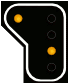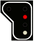 - Schwarzer dreieckiger Signalschirm mit zwei diagonal übereinander angeordneten weißen Lichtern: Vorbeifahrt für kleine Bewegungen erlaubt.