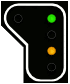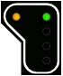 Grün-gelb-vertikal: Erlaubt die Vorbeifahrt am Signal als große Bewegung, das folgende Signal zeigt entweder gelb-gelb oder grün-gelb-horizontal an und der Signalabstand zwischen dem folgenden und dem übernächsten Signal ist geringer als der Bremswegabstand, so dass der Zug bereits vor dem folgenden Signal bremsen muss. |