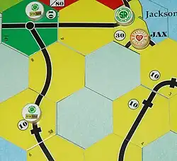 - Trans America, Trans Europa, die Spieler bauen gemeinsam ein Eisenbahnnetz in USA bzw. Europa