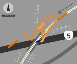 Der Zug befuhr den vor der Brücke liegenden Gleisbogen mit stark überhöhter Geschwindigkeit. Wie die Nationale Behörde für Verkehrssicherheit nachträglich feststellte, war der Zug mit 130 km/h in den Bogen eingefahren.[12] Der Zug wurde deshalb aus dem Bogen getragen, entgleiste – bis auf die am Zugschluss laufende, zweite Lokomotive – komplett und ein Teil der Eisenbahnfahrzeuge gelangte auf die Autobahn, wo sie mit fünf Pkw und zwei Lkw kollidierten.[13]