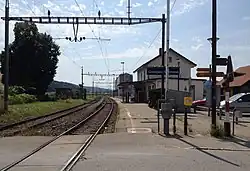 - ↑ Avenches, Châtillens, Cugy, Estavayer-le-Lac (nur Gleis 1), Yvonand und Zweidlen (nur Gleis 3)