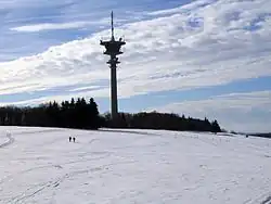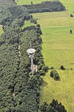 Etwa 340 m westsüdwestlich des Borgmannturms steht auf etwa 629 m Höhe der 115 m hohe Fernmeldeturm Eisenberg (⊙) der Deutschen Telekom AG, der in Stahlbetonbauweise als Typenturm FMT 5 errichtet wurde.
