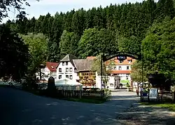 Nahe bei Weißenborn, ein Bau von 1692 laut Info an der Fassade. Außerdem Gaststätte[23] mit Ferienwohnungen. Sie befindet sich im waldfreien Teil des Mühltales.[31]