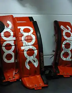 Der Eishockeytorwart trägt teilweise abweichende Ausrüstungsgegenstände, weil er hauptsächlich die scharfen Torschüsse abbekommt (bis zu 175 km/h).
