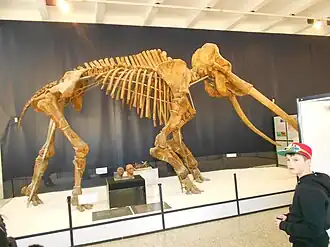 In ihrer stammesgeschichtlichen Vergangenheit waren die Elefanten insgesamt deutlich weiter verbreitet und kamen nicht nur in ihren heutigen Kerngebieten, sondern auch über weite Teile des nördlichen Eurasiens vor. Die meisten Arten lassen sich allerdings fossil nur in bestimmten Regionen nachweisen und blieben dadurch lokal beschränkt, einige Zwergformen lebten nur auf einzelnen Inseln endemisch.[7][70][5] Manche Vertreter erreichten aber auch eine sehr weite Verbreitung wie der Europäische Waldelefant (Palaoloxodon antiquus), der im westlichen Eurasien auftrat,[71][72] oder das Steppenmammut (Mammuthus trogontherii), das verschiedene Lebensräume von Westeuropa bis Ostasien erschlossen hatte. Einige Angehörige der Mammute (Mammuthus) drangen zudem über die Beringstraße nach Nordamerika vor und besaßen so eine paneurasische und nordamerikanische Verbreitung. Hier ist vor allem das Wollhaarmammut (Mammuthus primigenius) zu nennen, das hauptsächlich während der letzten Kaltzeit die offenen Steppenlandschaften, die sogenannte Mammutsteppe, besiedelte.[73][74][75]