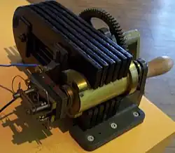 Erste bekannt gewordene magneto-elektrische Wechselstrommaschine, gebaut 1832 von Hippolyte Pixii -