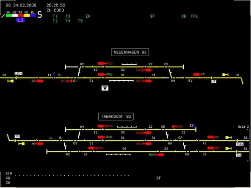 - ↑ Walter Jonas: Elektronische Stellwerke bedienen: Der Regelbetrieb. Eisenbahn-Fachverlag, Heidelberg 2001, ISBN 3-9808002-0-2, S. 44