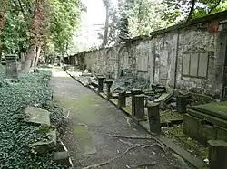 - ↑ Der östliche Rand des Friedhofs ging ursprünglich bis zu den heutigen Straßenbahnschienen.