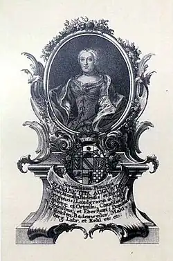 - ↑ Siehe geneall.net. Teilweise wird ein Heiratsdatum 1755 genannt, was aber aufgrund der Lebensdaten von Michael Wenzel nicht sein kann; überdies wird Elisabeth in den Quellen zum baden-badenschen Erbvertrag noch 1765 als ledig bezeichnet.