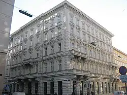Das Wohnhaus für den Bankier Adalbert Zinner (1824–1889), Ecke Operngasse und Elisabethstraße, wurde 1871 / 1872 von Johann Romano und August Schwendenwein im Stil der Wiener Neorenaissance errichtet. Die Fassade besitzt eine zweigeschoßige Sockelzone mit Arkadenfenstern. Darüber befinden sich an jeder Seite Balkone und additiv gereihte Giebelfenster.