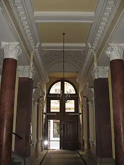 Bemerkenswert ist das Innere des Gebäudes. Die Einfahrt mit korinthischem Stuckmarmorpilaster, Ädikulanischen und Rosettentonne führt zu einem verbreiterten Vestibül. Dieses besitzt rote Marmorsäulen, eine Konsolendecke, Holzstöckelpflaster und säulchenbesetzte Holztüren. Das Hauptstiegenhaus ist mit einer Stuckdecke und Schmiedeeisengeländer ausgestattet. Ein separater pilastergegliederter Aufgang führt zu einer Mezzaninwohnung mit einem bemerkenswerten Erkerzimmer, das eine Stuckdecke und stuckierte Wandfelder zieren. In diesem Gebäude richtete der Architekt Adolf Loos 1904 eine Wohnung für den Amateurfotografen Alfred Sobotka inklusive eigener Dunkelkammer ein. Das originale Interieur der Wohnung ist nicht erhalten.