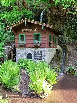 - ↑ Foto der Informationstafel nahe der Elsbach-Mühle, auf commons.wikimedia.org