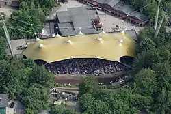 Tribüne beim Elspe Festival während einer Vorstellung aus dem Flugzeug gesehen