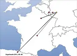 - ↑ Stein, F-J. 2011: Ergebnisse der Bestandsaufnahme genauer erfasster Arten für das Jahr 2010. Irrgeister 28: 24