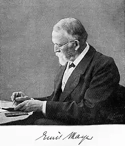 - Fridolin Rimmele: Oberbaurat E. Mayer in Stuttgart †. In: Zentralblatt der Bauverwaltung, 30. Jahrgang 1910, S. 409. (mit Porträtfoto)