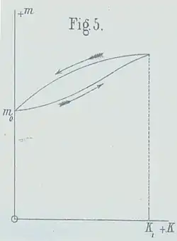 Die Abbildung stammt aus der Veröffentlichung der Ergebnisse in den Annalen der Physik und Chemie von 1881 und zeigt das magnetische Moment als Funktion der magnetisierenden Kraft. Die von der Kurve umschlossene Fläche ist ein Maß für die Arbeit, die bei der Ummagnetisierung geleistet und in Wärme umgesetzt wird. Der Begriff Hysteresekurve wurde erst später geprägt. In den heute üblichen Darstellungen der Hysteresekurve wird das magnetische Moment M als Funktion der magnetischen Feldstärke H dargestellt.