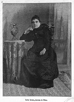 - ↑ Manuel Ossorio y Bernard: Serrano de Wilson (Emilia). In: Ensayo de un catálogo de periodistas españoles del siglo XIX. Imprenta y litografía de J. Palacios, Madrid 1903, S. 431 (archive.org).