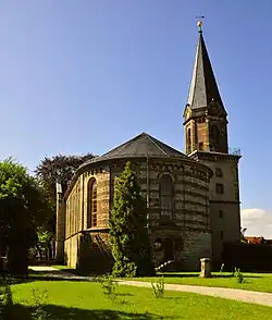 Vom 1443 entstandenen Vorgängerbau der Dorfkirche St. Bonifatius stammt der Turm mit Kreuzgratgewölbe. Das um 1870 erneuerte Kirchenschiff ist ein Saalbau im neoromanischen Baustil. Im Inneren wurde eine Doppelempore eingebaut